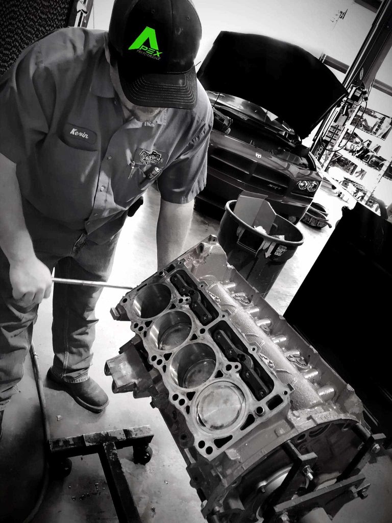 The rotating assembly is the heart and ultimate determining factor in what hp level the engine can support. It consists of the crankshaft, piston, and connecting rods. Apex takes its name to heart here, and we never install new parts “out of the box.” Every “pre-balanced” part is double-checked for accuracy, quality, and fitment, and rebalanced by our machinist. This means every rotating assembly we touch is balanced regardless of brand or its history of “being balanced previously.” We just can’t take the word of a supplier or another shop when it’s our name on the line. Simply put, we want to stand behind our work. Weighing the pin, rods, and pistons is all done again to ensure it’s a finished product we can stand behind.